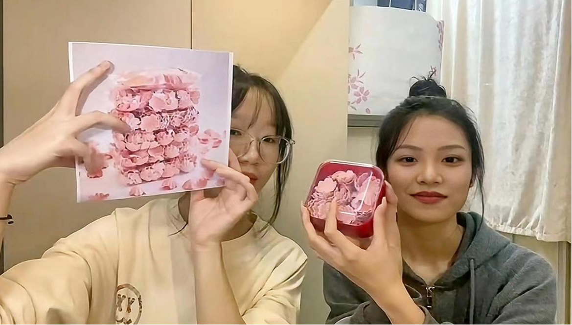 新产品发布会中,郭晓晓和卢思颖英文介绍公司特色产品樱花面