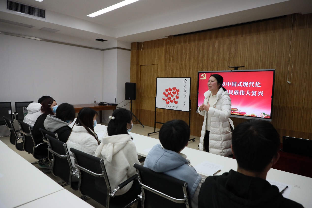 班会上,冉书记以“深入学习贯彻党的二十大精神深刻 领会中国式现代化的中国特色和本质要求”为题,从深刻领会中国式现代化的中国特色、深刻领会中国式现代化的本质要求以及在推进中国式现代化的火热实践中贡献青春力量三个方面,向同学们充分解读了中国式现代化的内涵。并勉励同学们在日常学习和生活中,一要立大志,紧盯学业目标,锚定职业规划,把握奋斗方向; 二要明大德,打牢道德根基,提升道德修为; 三要成大才,学习新理念、探索新方法,增强自身本领; 四要担大任,树立与新时代同向同行的理想信念和价值追求,激扬青春风采,不负青春年华。时刻保持清醒的头脑,坚定信念,在推进中国式现代化的火热实践中贡献青春力量。