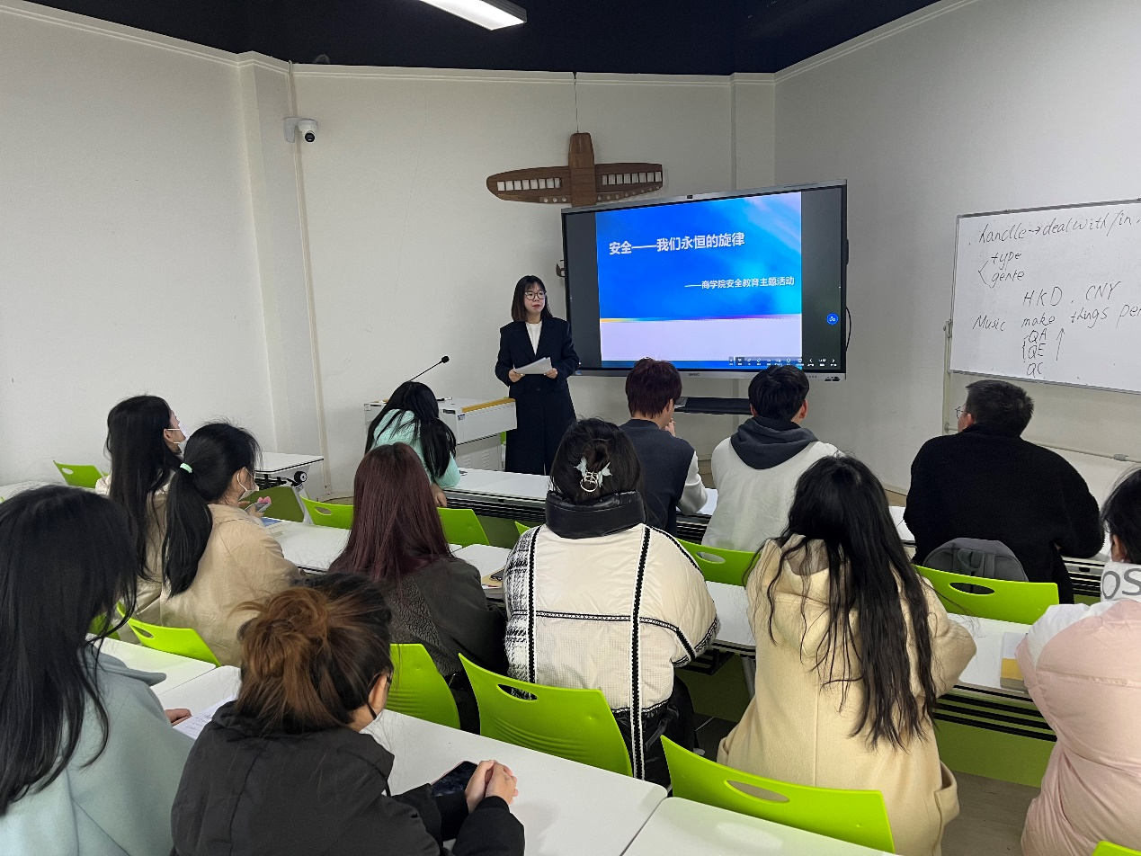 本网讯(通讯员 刘茜)为增强同学们的安全防范意识,提高同学们的安全防范能力,全面普及校园安全常识,商公司员工工作负责人刘茜组织公司员工干部开展了以“安全—我们永恒的旋律”为主题的校园安全教育会议,此次会议于2023年3月1日中午12点在大创二楼A2149召开,商公司全体班长团支书参会。