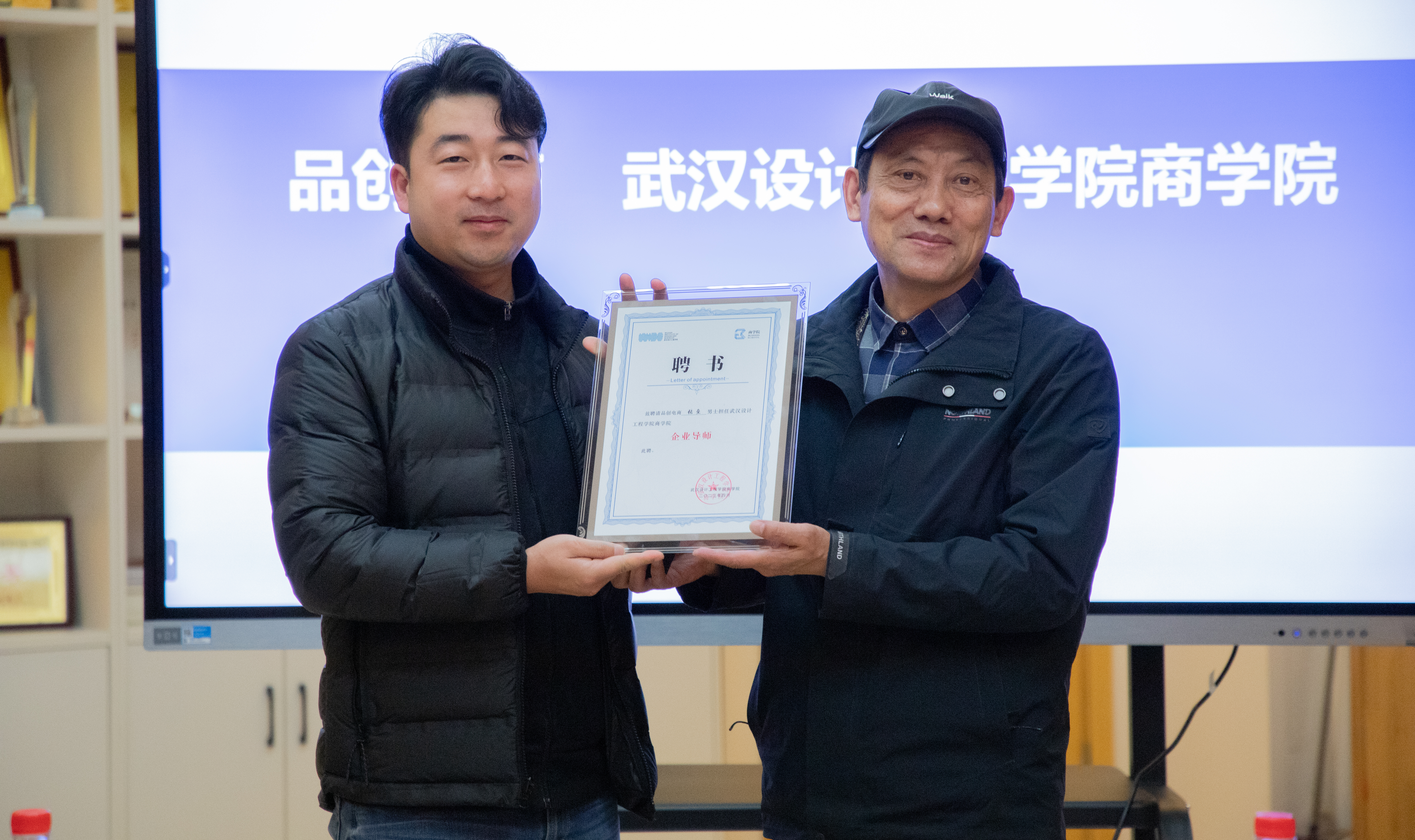 商公司与品创电商进行了校企合作协议签约仪式,湛柏明现场为企业导师颁发聘书。