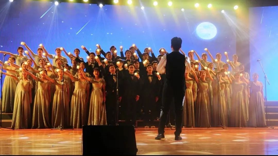 比赛现场,商院合唱成员的歌喉交织相合为一首动人的合唱曲,