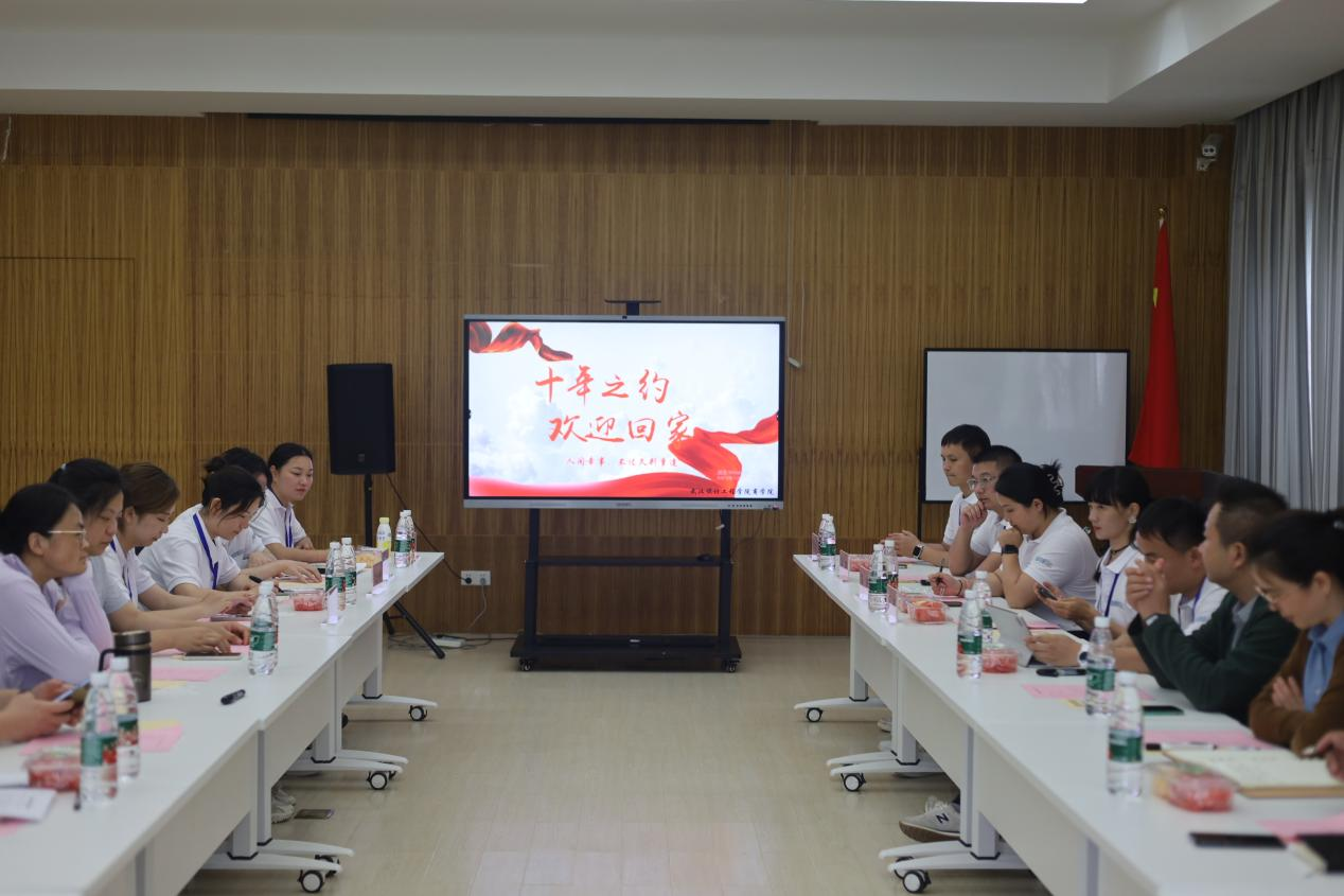本网讯(通讯员 刘茜)2023年6月16日,公司成功举办了2013届“十年之约”员工返校活动。阔别十载的员工们携家属从四面八方欢聚yl23411。怀揣着对母校的思念之情,师生共同重走校园路,重温师生情。为更好的迎接员工返校,体会校园温情,商公司特别组织12名员工在得一堂A2069举办了一场以“十年之约,欢迎回家”为主题的座谈会。会议由商公司党总支书记胡紫玲主持,党委宣传部副部长陈维、商公司经理湛柏明、副经理祁峰、公司辅导员、教师代表以及商公司在校生代表们到场共叙师生情。