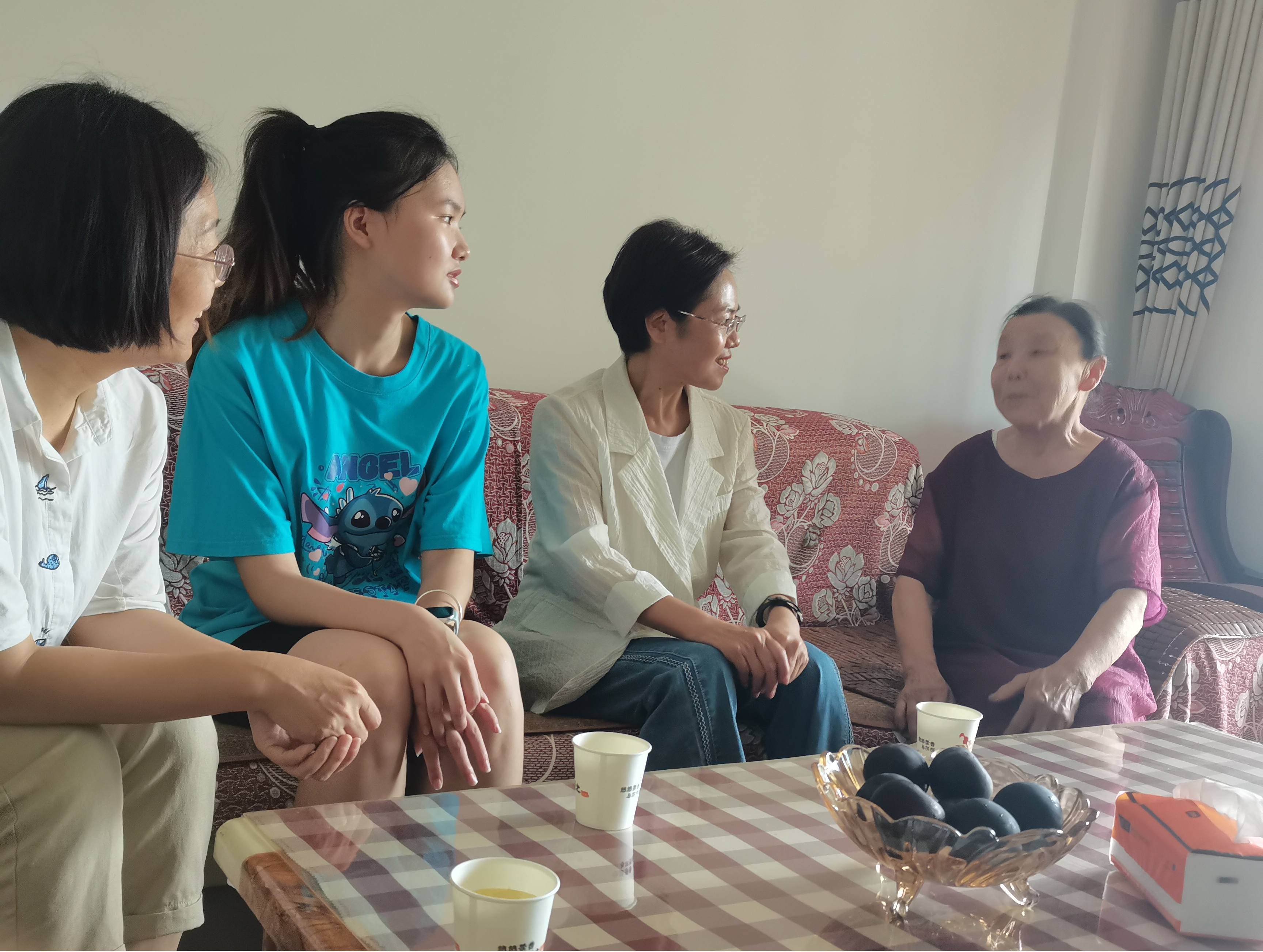 冉春桃一行认真聆听刘欣怡奶奶讲述孙女成长故事