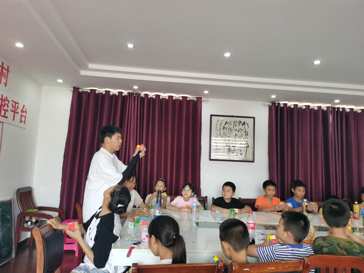 志愿者肖秋波带来了《智慧动手 脑力运动》的魔方课。通过学习魔方还原的方法和技巧,有效锻炼小朋友们手、眼、脑协调能力,提高注意力、记忆力和空间感,有效开发小朋友们智力、创造力和学习分析能力。课堂中老师用记忆法和趣味教学,让孩子们在短时间内完成魔方还原这项高难度任务,从而使孩子们树立自信心和提高自我认同感。