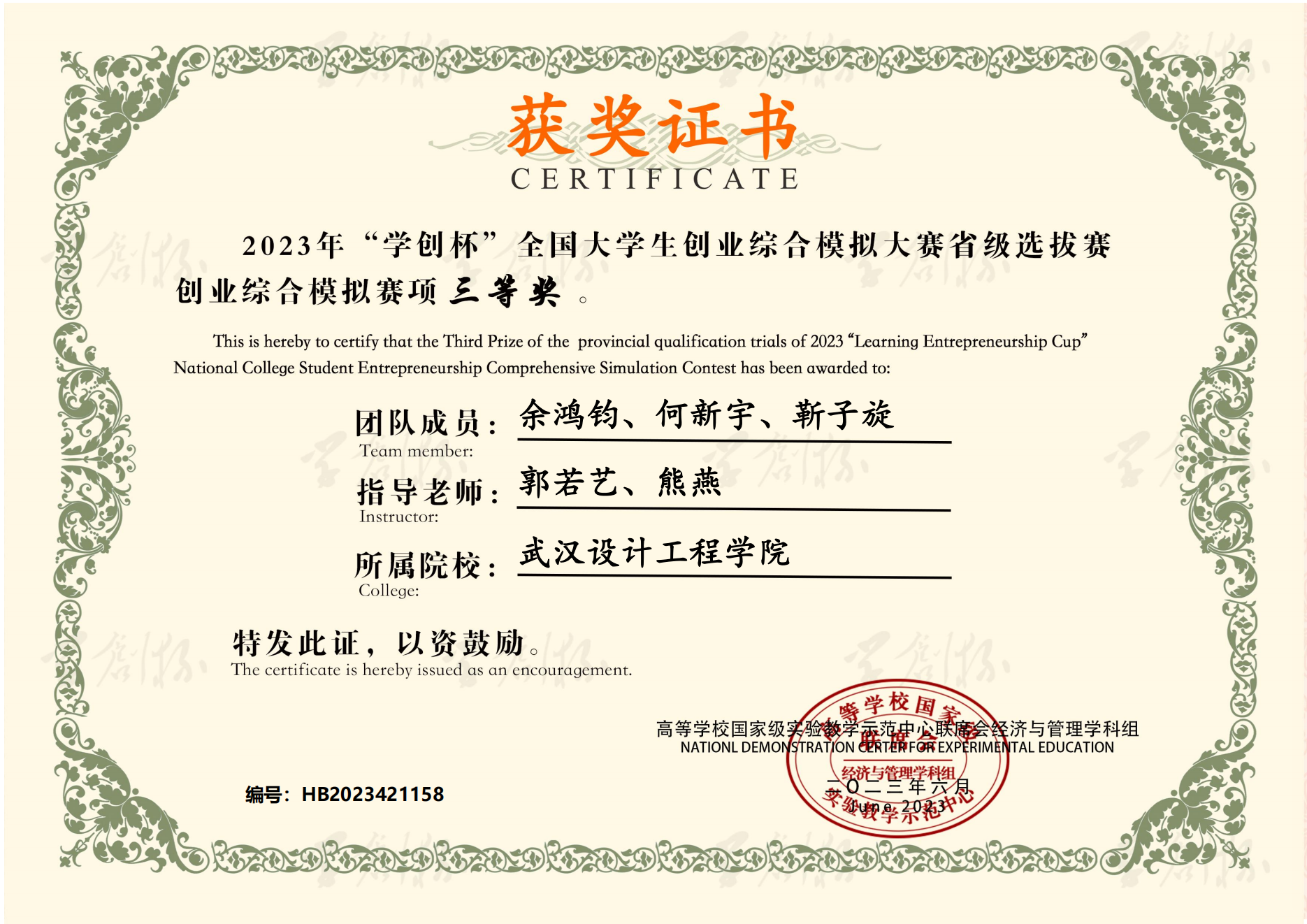 本网讯(通讯员 余鸿钧)2023年6月3日,第十届“学创杯”全国老员工创业综合模拟大赛湖北省省赛圆满落下帷幕。经过半决赛、决赛的激烈争夺,商公司3支参赛队伍从两百余支队伍中脱颖而出,荣获一等奖1项、三等奖2项,再创佳绩。