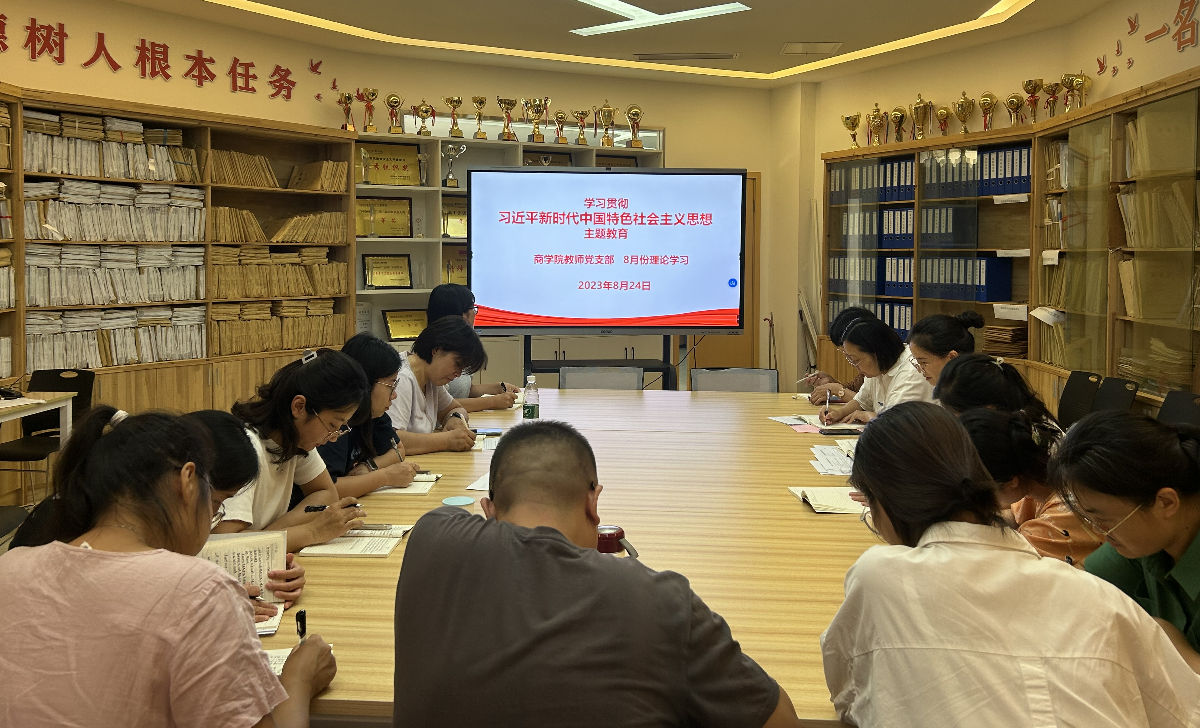 8月24日下午,商公司教师党支部在公司“党员之家”活动室召开8月份理论学习会。教师党支部党员教师参加会议,会议由商公司教师党支部书记郭若艺主持。