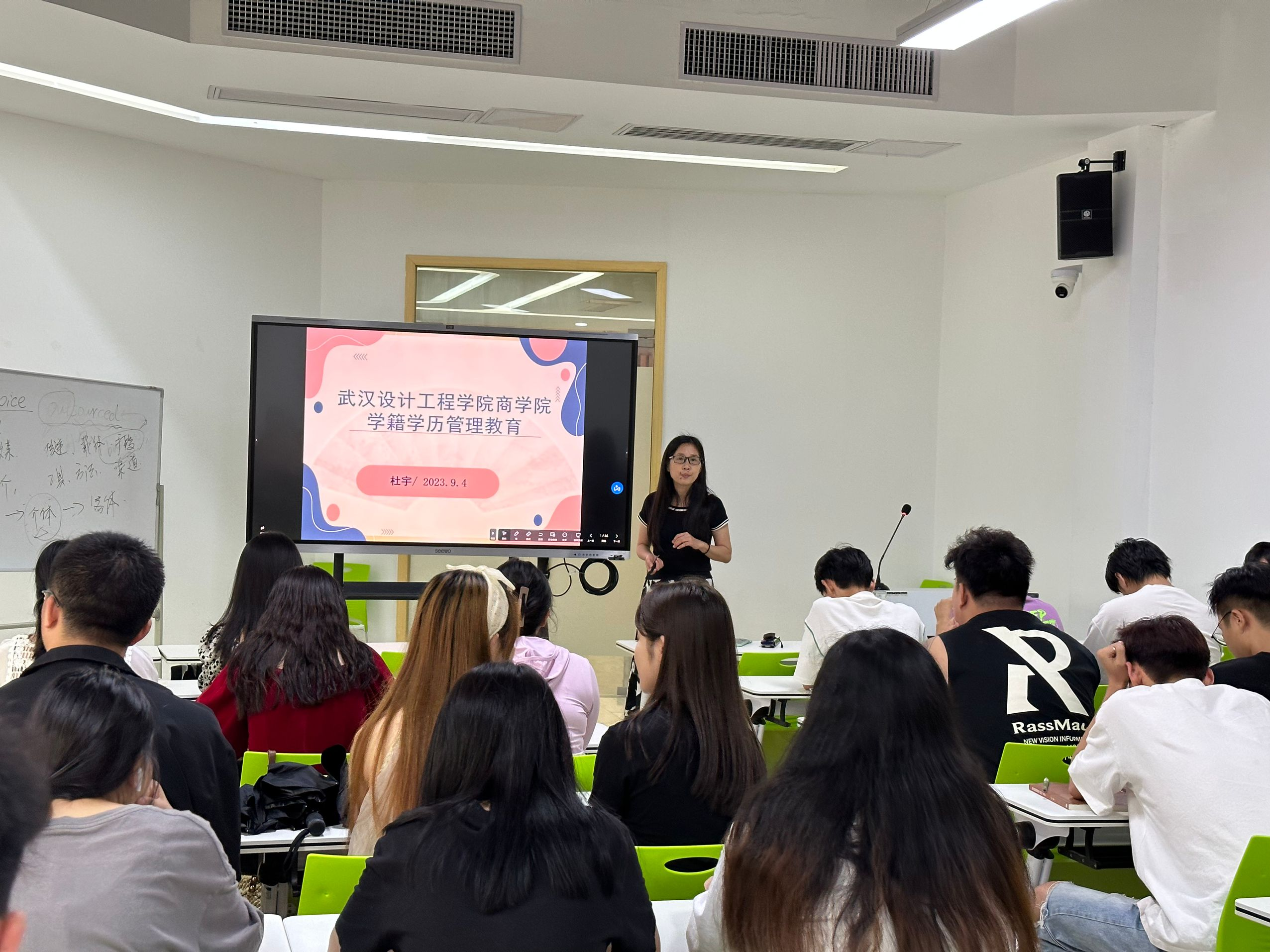 公司教务办公室杜宇老师为新生们开展学籍教育,从新生学籍注册、学籍异动、学分制、如何圆满完成学业等方面为新生解读员工手册中学籍管理方面的条例,希望同学们能尽快明确学习目标,养成良好的学习习惯,严格要求自己,顺利完成本科学业。