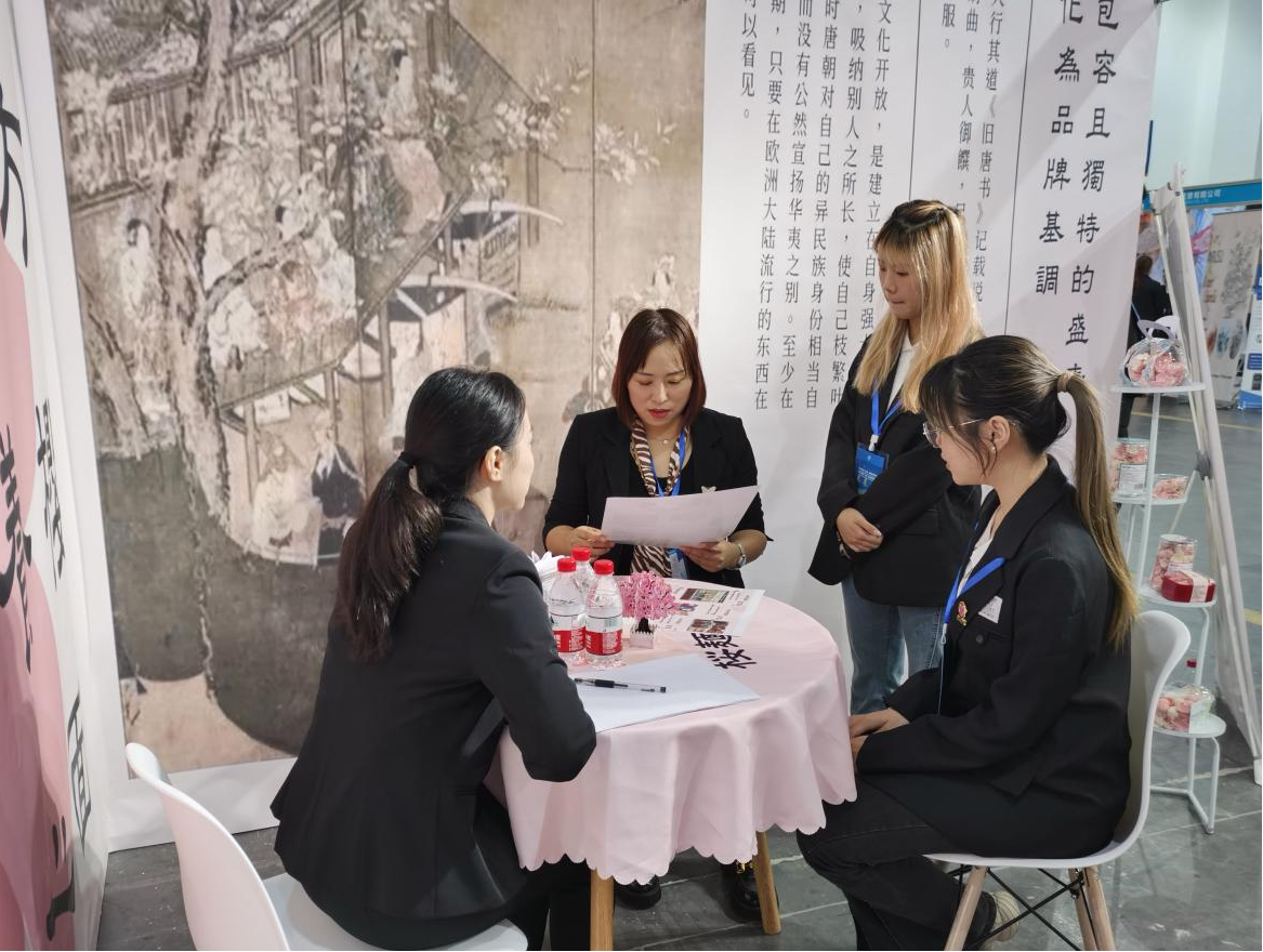 备赛期间,指导老师郭若艺和宋明娟对团队成员进行指导培训。面对不同阶段的比赛难度逐渐增大,专业性强,涉及知识面范围广,团队成员共同克服困难,协同合作,带领队友前往樱面本铺线下店进行实地考察拍摄素材,对于新产品发布会和商贸配对谈判环节则把专业知识、英语应用能力、产品推广策略和谈判技能有机融合,进一步提升参赛员工专业水平和应变能力,在现场完美呈现了新产品发布会和商贸谈判现场的场景。