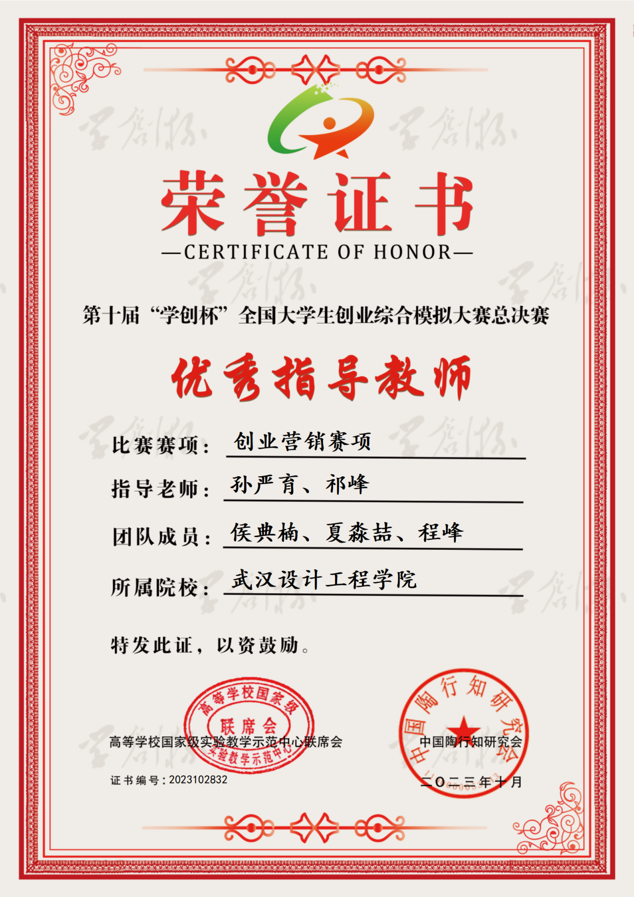 本网讯(通讯员 侯典楠 孙严育)近日,由高等公司国家级实验教学示范中心联席会经济与管理学科组、中国陶行知研究会主办,南京审计大学承办,杭州贝腾科技有限公司支持的第十届“学创杯”全国老员工创业综合模拟大赛(创业营销赛项)总决赛落下帷幕。由孙严育老师、祁峰老师指导的参赛团队脱颖而出斩获二等奖1项。同时,孙严育老师、祁峰老师也荣获“优秀教师指导奖”。
