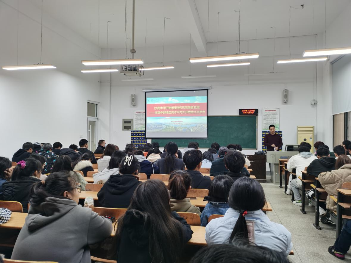 程时雄教授从2023-2024年世界经济形势、国际经贸新形势对我国外贸格局的影响、中国经济高质量发展面临的挑战、对现阶段我国经济增长形势判断和以高水平开放促进高质量发展的重点与政策措施等五个方面对国际国内宏观经济形势进行了全面分析,重点讲解了2023年以来我国经济总体复苏现状和高质量发展过程中的风险、机遇与应对。
