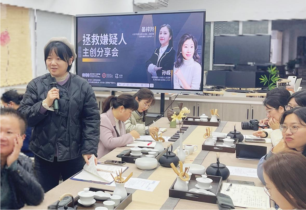 本网讯(通讯员 祁峰 周孟孟 张瑞琴)12月14日下午,电影《拯救嫌疑人》主创团队分享与研讨会在商公司文旅综合实训茶艺室得一堂A3019召开,公司副经理祁峰主持会议。出席会议的嘉宾有来自北京恐龙影业的创始人、总裁孙嵘女士,联合创始人、电影制片人副总裁晏梓羚女士;商公司经理湛柏明,校产学研中心涂清主任、王欣副主任,文化产业与旅游管理系、经贸与管理系、商务英语系的教师代表参加本次会议。