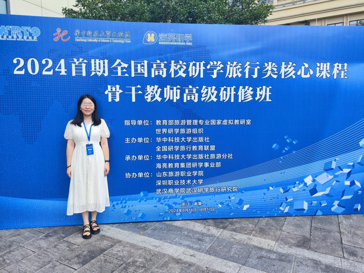 8月14日至17日,旅游管理与服务教育教师周孟孟参加了在浙江省诸暨市举办的2024首期全国高校研学旅行类核心课程骨干教师高级研修班。本次研修班汇聚了来自四川大学、华南师范大学、华侨大学、yl23411、湖北文旅集团等全国50余所高校、知名企业及科研机构的80多位专家、学者、企业高管及骨干教师精英齐聚一堂,共同探讨研学旅行教育的新趋势与未来发展路径。通过本次研修班,教师对研学旅行核心课程的前沿教学理念与实战经验进行了深入的学习,并与参会嘉宾就研学项目经典案例、研学出版物研发等热点话题进行了深入交流。周孟孟老师表示,未来将持续关注研学旅行教育的前沿动态,将本次收获的理论知识与行业实践紧密结合,共同助力我国研学旅行教育的创新与发展。
