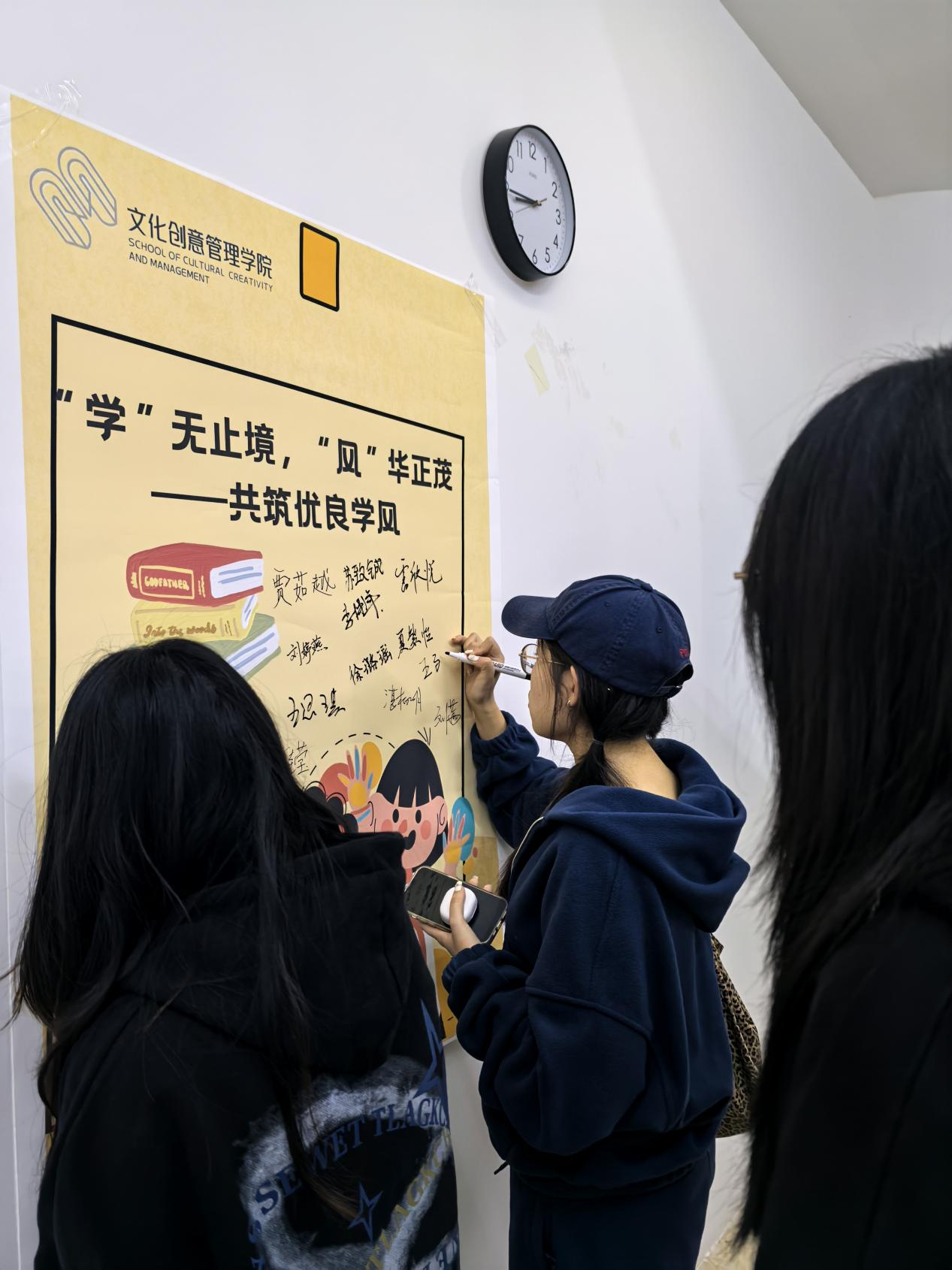 在大会的尾声,公司学科部代表宣读了学风建设倡议书和考试诚信承诺书。倡议书如同一面旗帜,引领着同学们树立正确的学习观念,培养良好的学习习惯;而考试诚信承诺书则如同一道防线,守护着考试的公平性和公正性。与会人员在活动宣传海报上郑重签署了自己的名字,那一笔一划,不仅是对自己承诺的坚定表达,更是对学风建设和考试诚信的庄严宣誓。