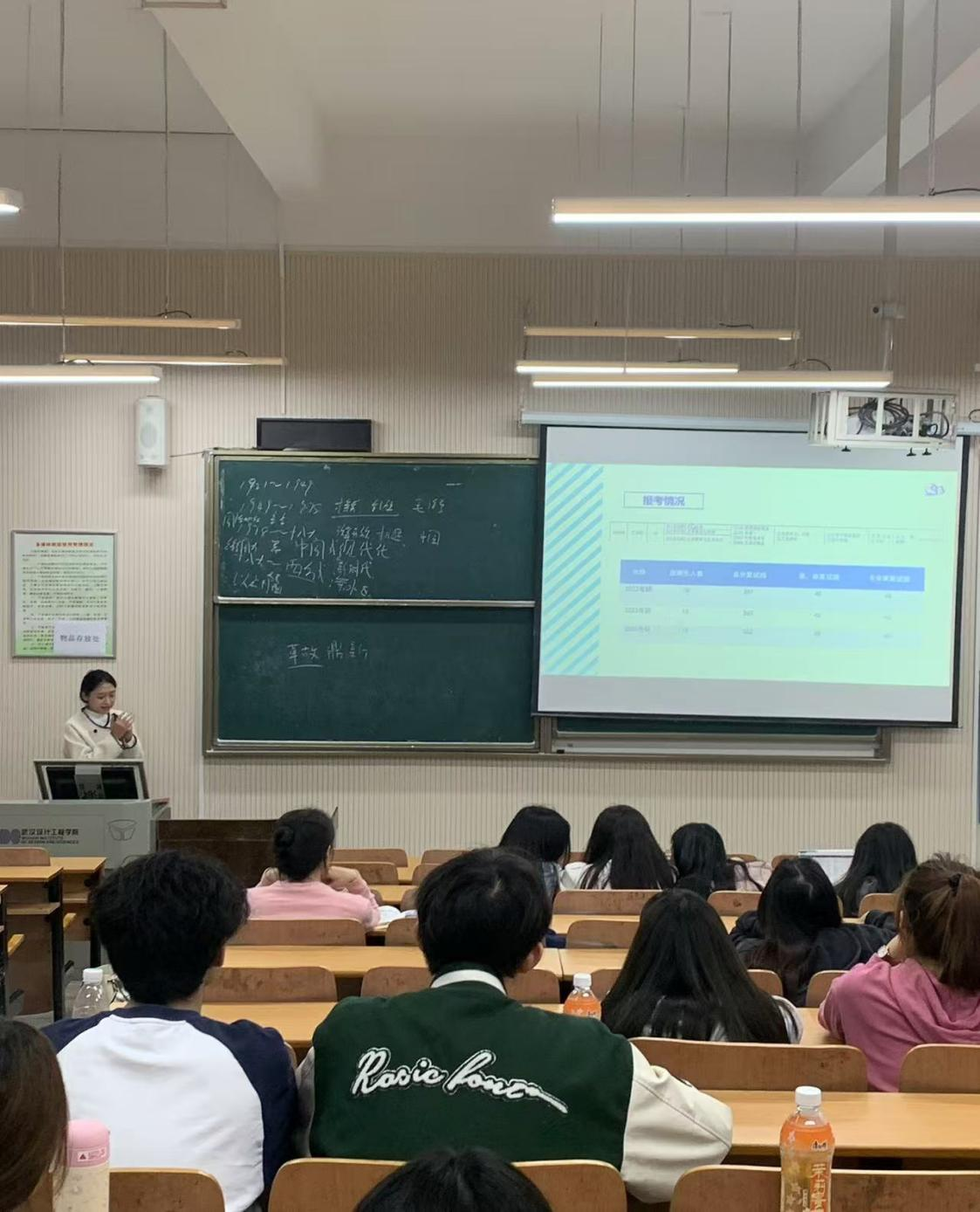 本网讯(通讯员 刘茜)11月13日下午5点,考研经验分享会在临湖轩B1029教室开展。此次活动的主讲嘉宾由武汉纺织大学艺术与设计公司的研究生招生工作负责人,公司专任教师彭信宇,22级23级文化产业管理专业的全体学子参与其中。