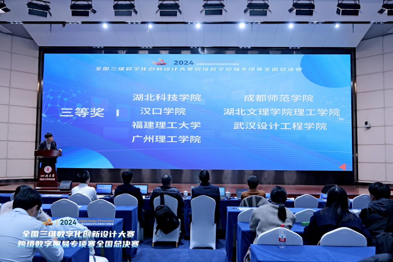 本网讯(通讯员 朱江月)2024年12月7日,第17届全国三维数字化创新设计大赛跨境数字贸易专项赛全国总决赛在四川成都的四川大学开幕。此次赛事为期2天,来自全国的34支队伍晋级全国总决赛,其中22所公司的24支队伍参与了线下总决赛的角逐。此赛事为入选教育部中国高等教育学会发布的《全国普通高校学科竞赛排行榜》赛项。