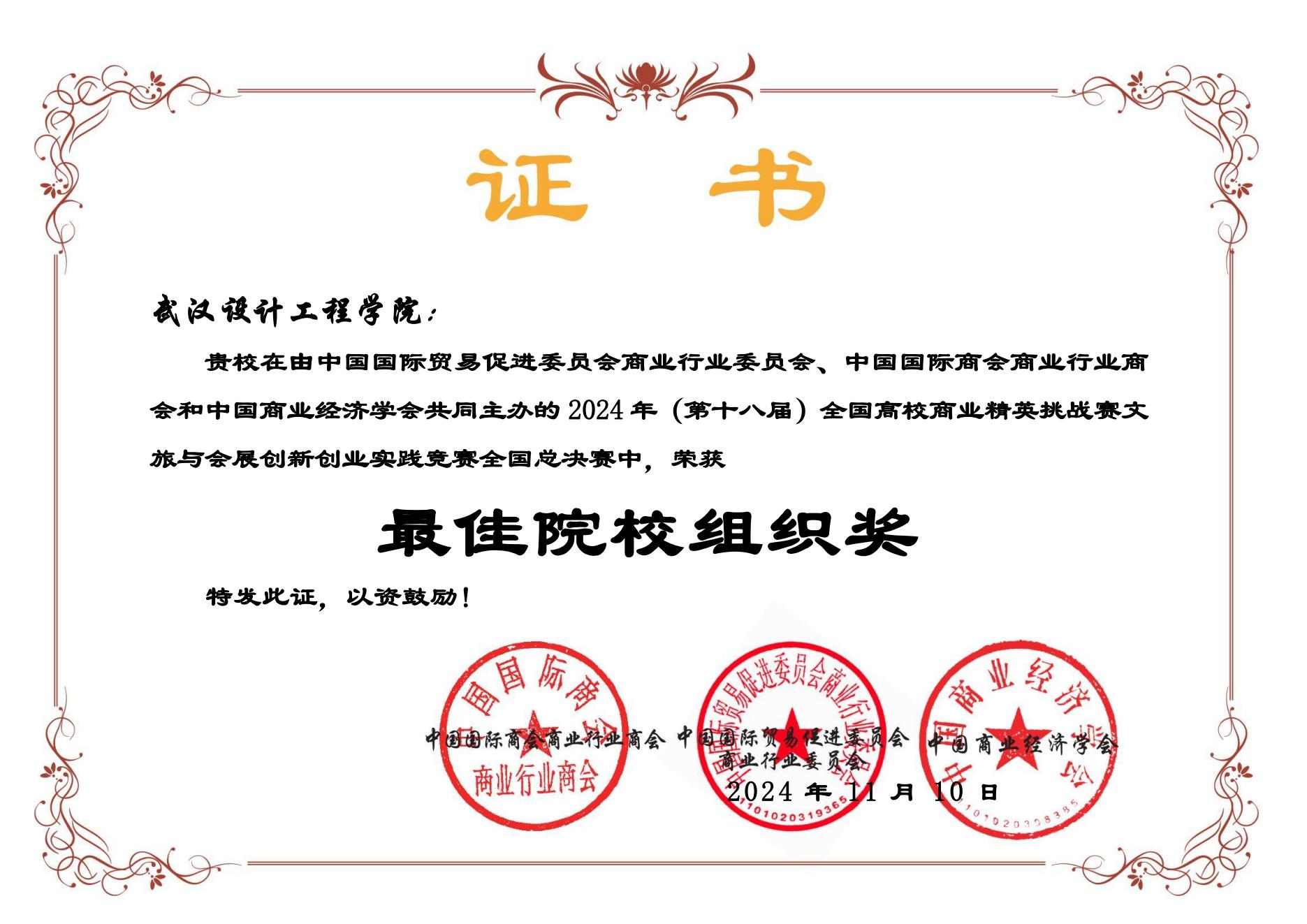 公司也在在本次全国高校商业精英挑战赛中,荣获“最佳院校组织奖”。此次佳绩的取得,不仅展示了公司学子在文旅与会展领域的创新能力和专业素养,也体现了公司在商科教育领域的综合实力和办学水平。公司将继续秉持“以赛促学、以赛促教”的理念,鼓励员工积极参与各类学科竞赛,不断提升自身的实践能力和综合素质,为未来的职业发展奠定坚实基础。此次佳绩的取得,离不开公司各级领导的关心和支持,也离不开指导老师的辛勤付出和参赛员工的努力拼搏。我们相信,在未来的日子里,公司学子定能在更多领域取得更加辉煌的成绩,为公司的发展贡献自己的力量。
