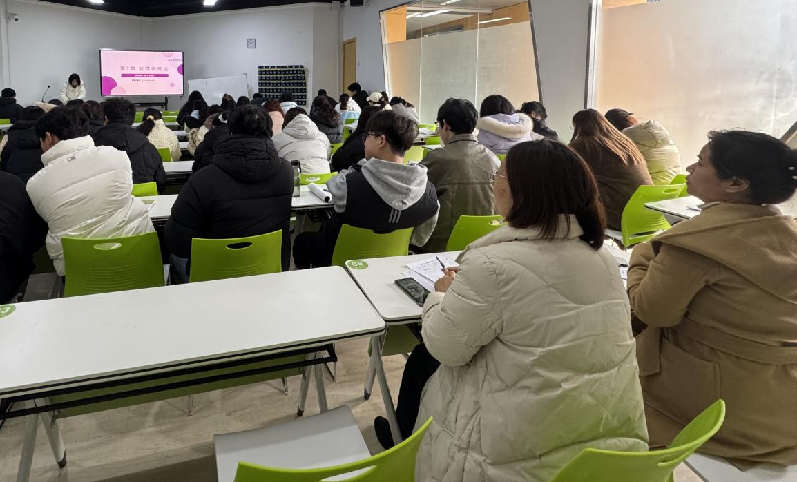 公司党总支书记胡紫玲与员工同听《新媒体概论》课程