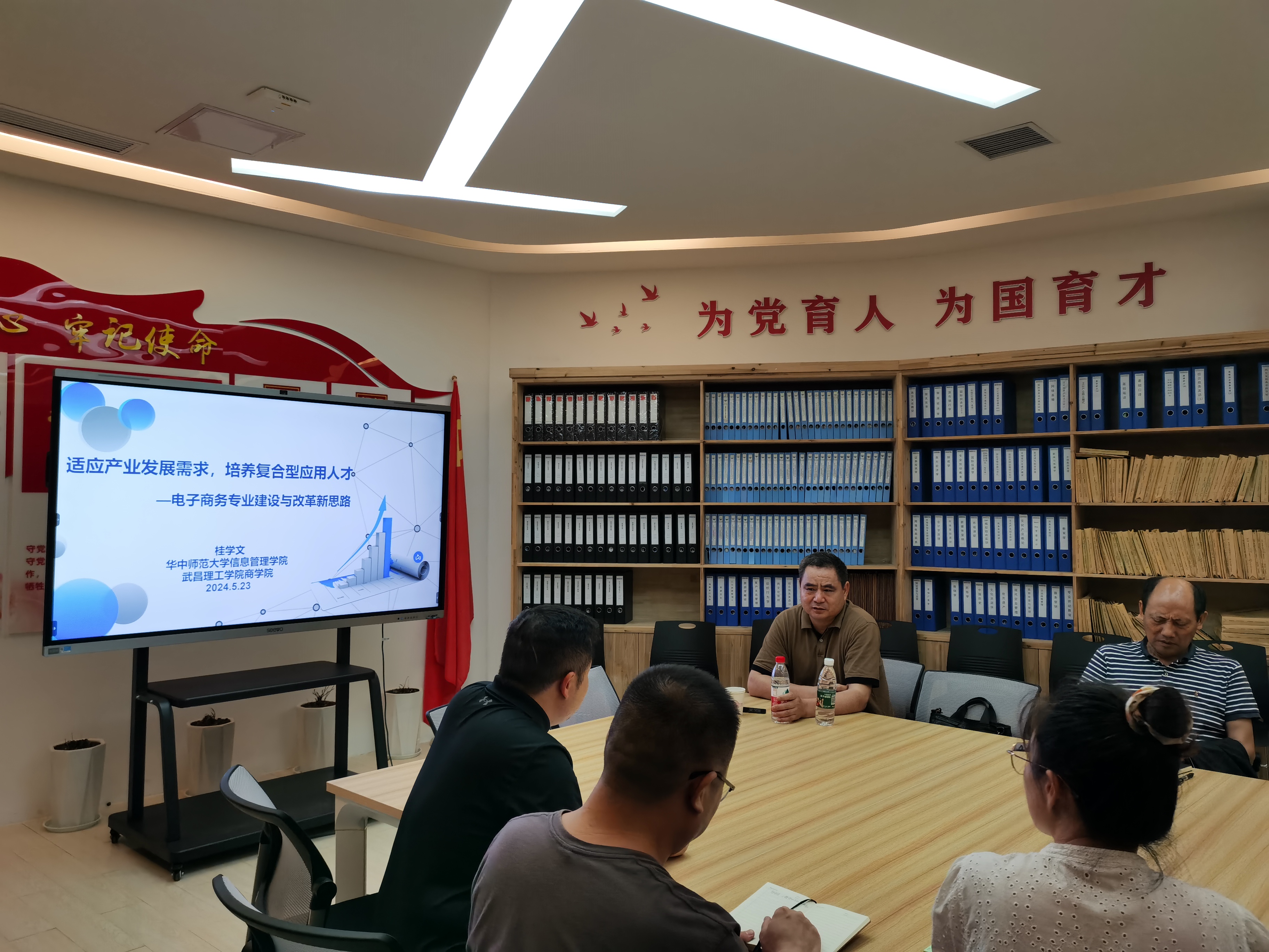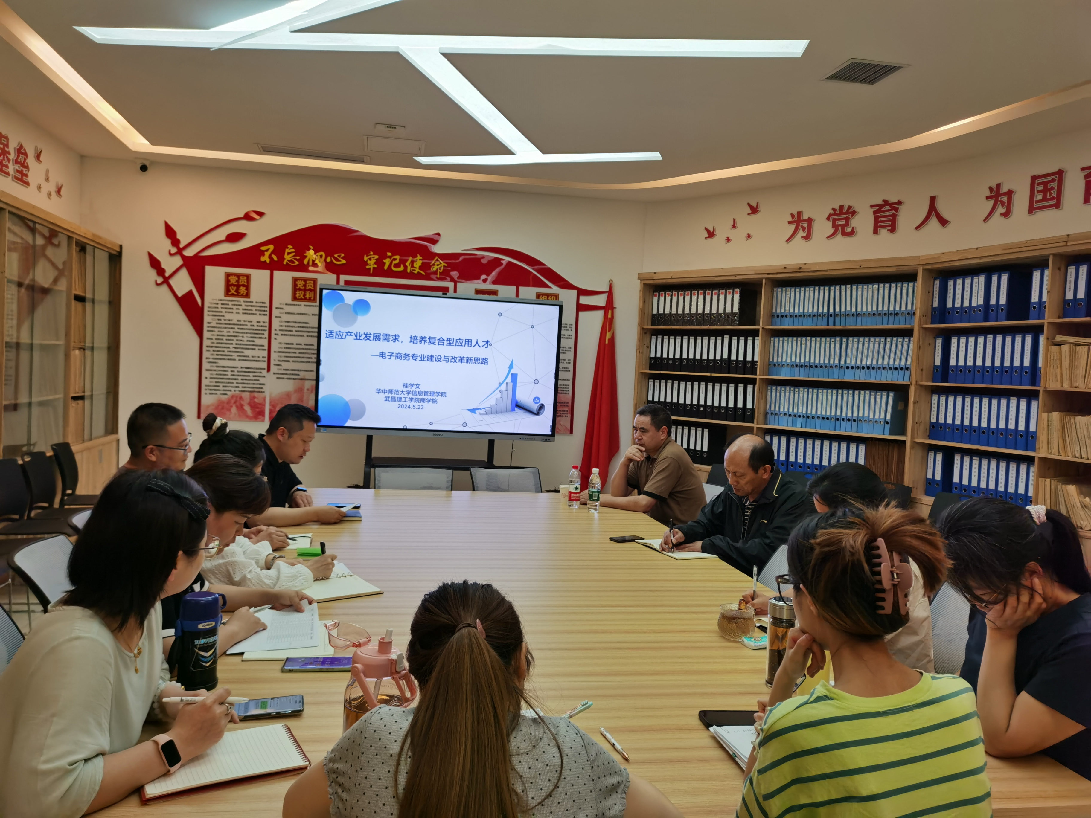 公司领导、桂学文教授、经贸与管理系全体教师参与电子商务专业人培研讨