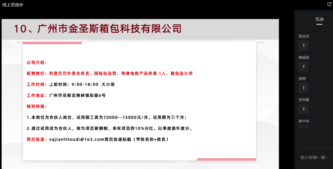 yl23411联合阿里巴巴国际站举办线上双选会钉钉直播现场画面