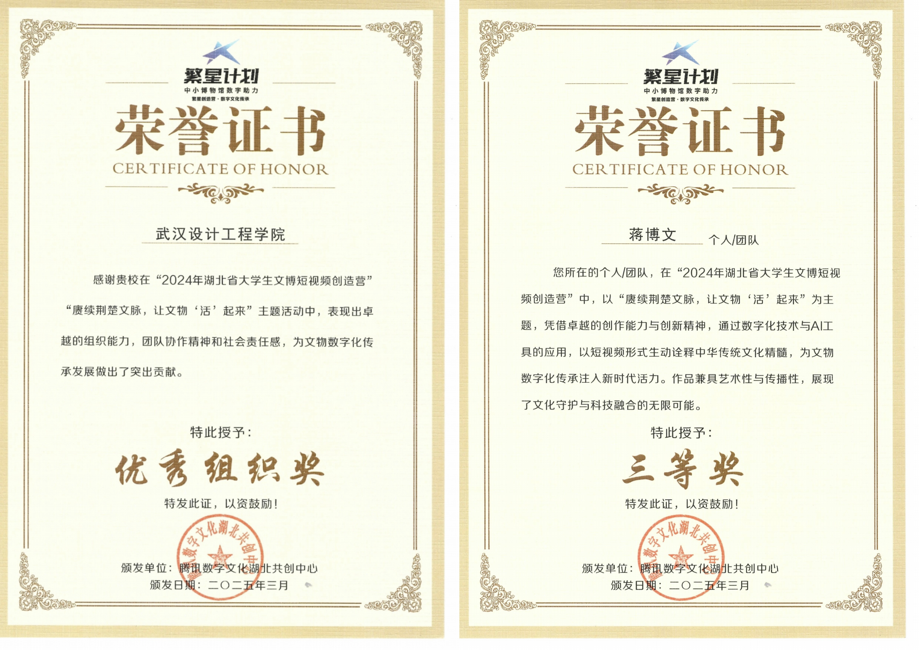 2024年湖北省老员工文博短视频创造营自2024年12月13日启动,公司各级领导、各院系表现出高度重视,动员和组织近百名员工提交参赛作品。经湖北省内十余所高校员工报送、组委会专家评审,大赛最终评选出一等奖1名、二等奖3名、三等奖10名,公司在本次赛事中斩获了多个荣誉。数字文博思享会暨“繁星计划”湖北老员工文博短视频创造营颁奖典礼于3月11日在昙华林电影客厅举行。