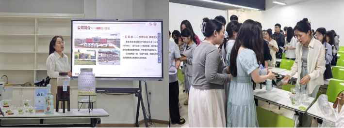 5月8日下午,谷城石花霸王醉销售有限公司在得一堂A2139带来“酒文化+新零售”跨界宣讲。赵丽君经理现场演示“轻养生·潮碰撞”特调鸡尾酒,结合品牌IP联名、直播电商等案例,讲述传统白酒行业的年轻化转型路径。企业工作人员现场揭秘配方深意:“红枣枸杞代表石花酒业百年传承的底色,雪碧柠檬象征我们对年轻创意的包容。正如职场新人既要扎根传统,也要敢于破圈。”
