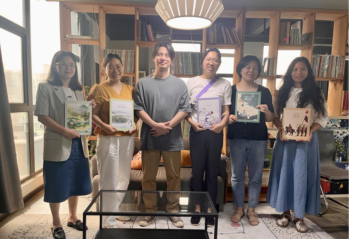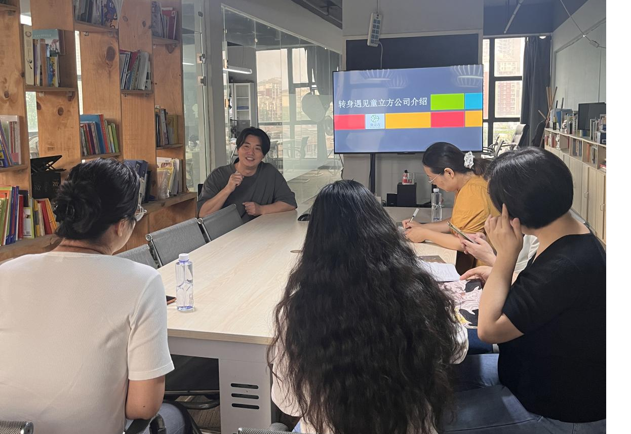 在童立方公司负责人陈禺舟的陪同下,胡紫玲一行参观了办公区域与企业直播间,近距离感受企业的创意氛围与直播运营场景。随后,童立方创始人兼董事长杨文轩先生在加拿大通过远程连线,介绍了公司的发展历程与愿景。他强调,童立方自2014年成立以来,业务涵盖童书出版、儿童教育和娱乐内容(IP)策划运营,致力于构建“阅读+服务+教育”的生态闭环,希望通过校企合作,吸纳更多优秀人才,共同推动儿童阅读与教育事业的创新发展。