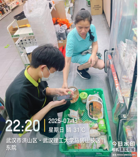 指导教师潘胜莲走访today便利店(理工大店)并和实习生一起录入条码