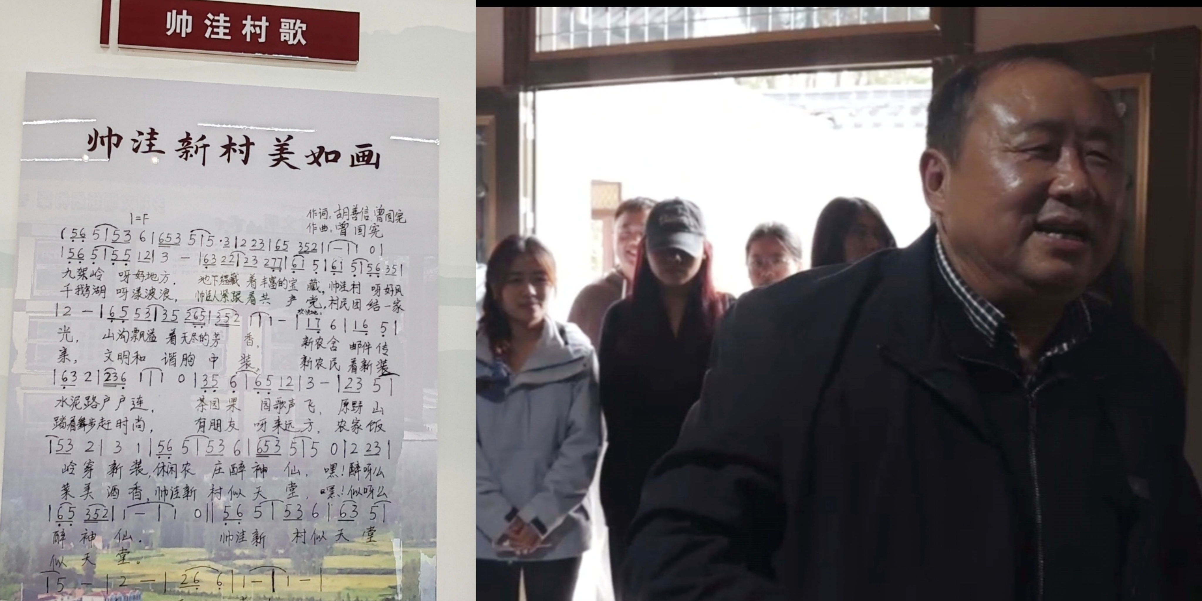 实践活动临近结束,帅洼村支书为表达对师生们的深厚情谊与衷心感谢,现场演唱了《帅洼村歌》,“九架岭呀好地方,地下蕴藏着丰富的宝藏……”悠扬的旋律、质朴的歌词,满含着村民对家乡的热爱与对师生的不舍。师生们纷纷加入合唱,歌声回荡在村舍里、田野间,成为此次实践活动最温暖动人的记忆。