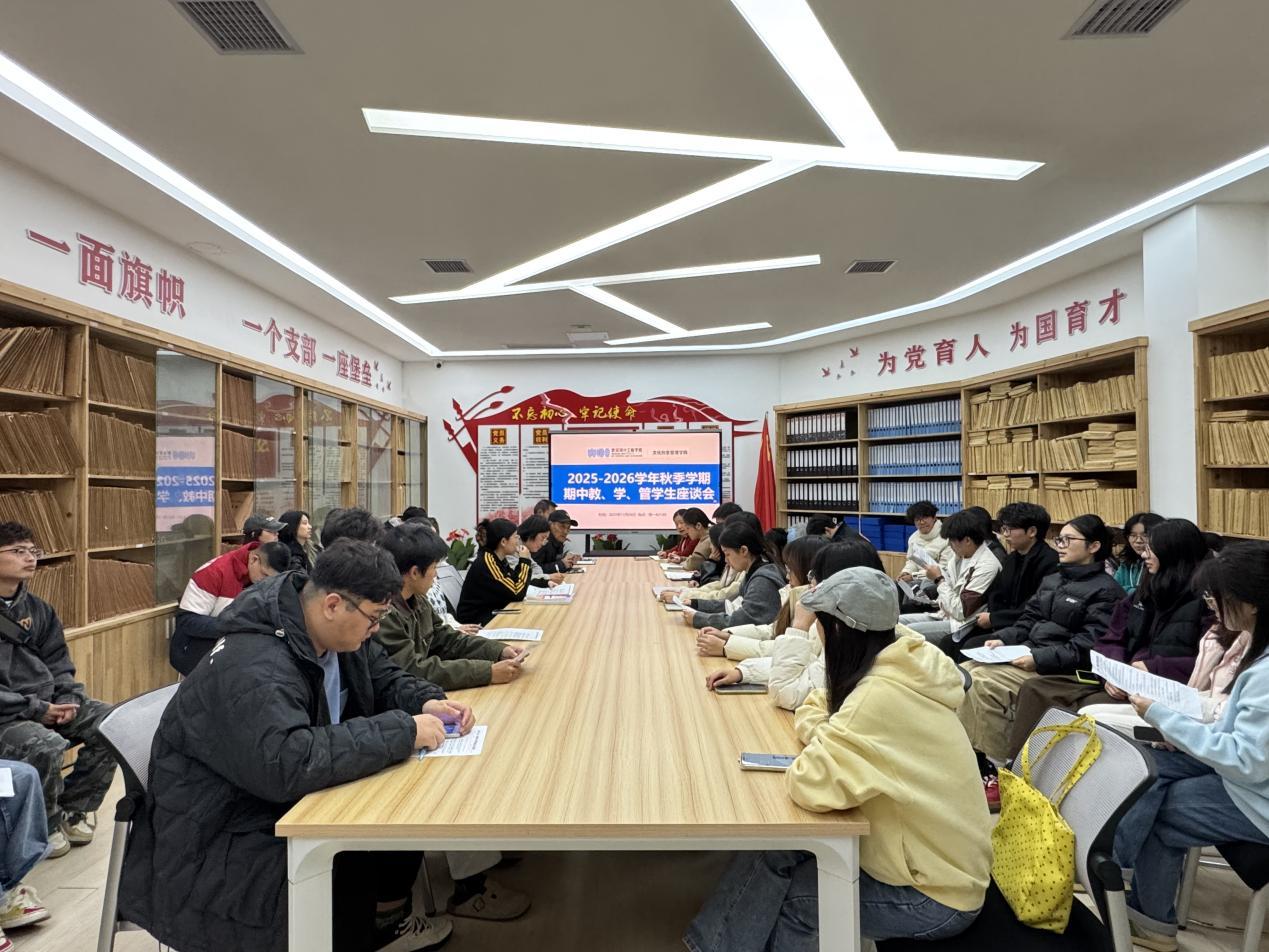 红安校区员工座谈会于11月28日中午在H5-1049会议室举行。本次座谈会由公司刘茜老师主持,教务处副处长张睿、公司党总支书记胡紫玲、班主任、专任教师、教务以及各班级员工代表参加座谈。2025级二十名员工代表围绕校园生活与学习畅谈进入大学后的体会和感受,同学们对公司及公司给予的学业及生活上的支持、助力和关爱表示认可和感谢的同时,从课程教学、文体活动、日常管理、教员工活设施等方面提出建议和意见。