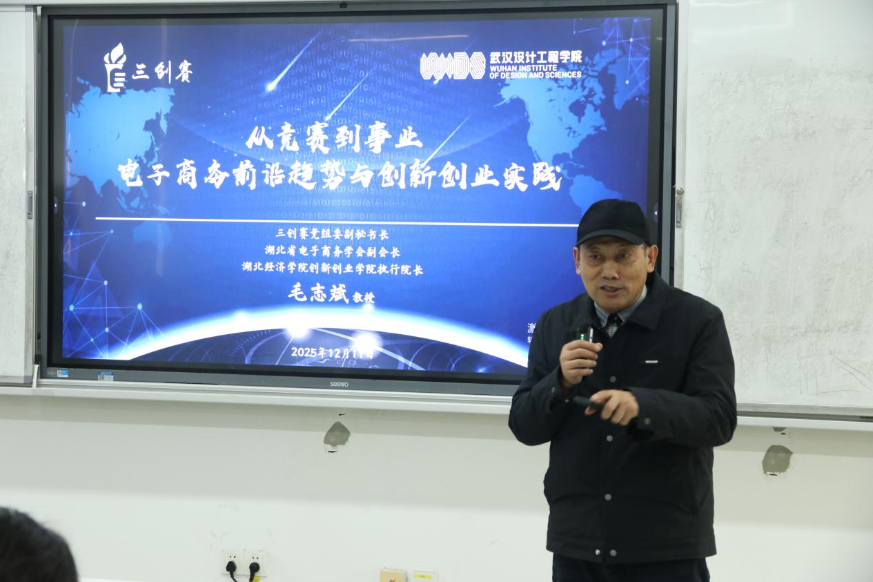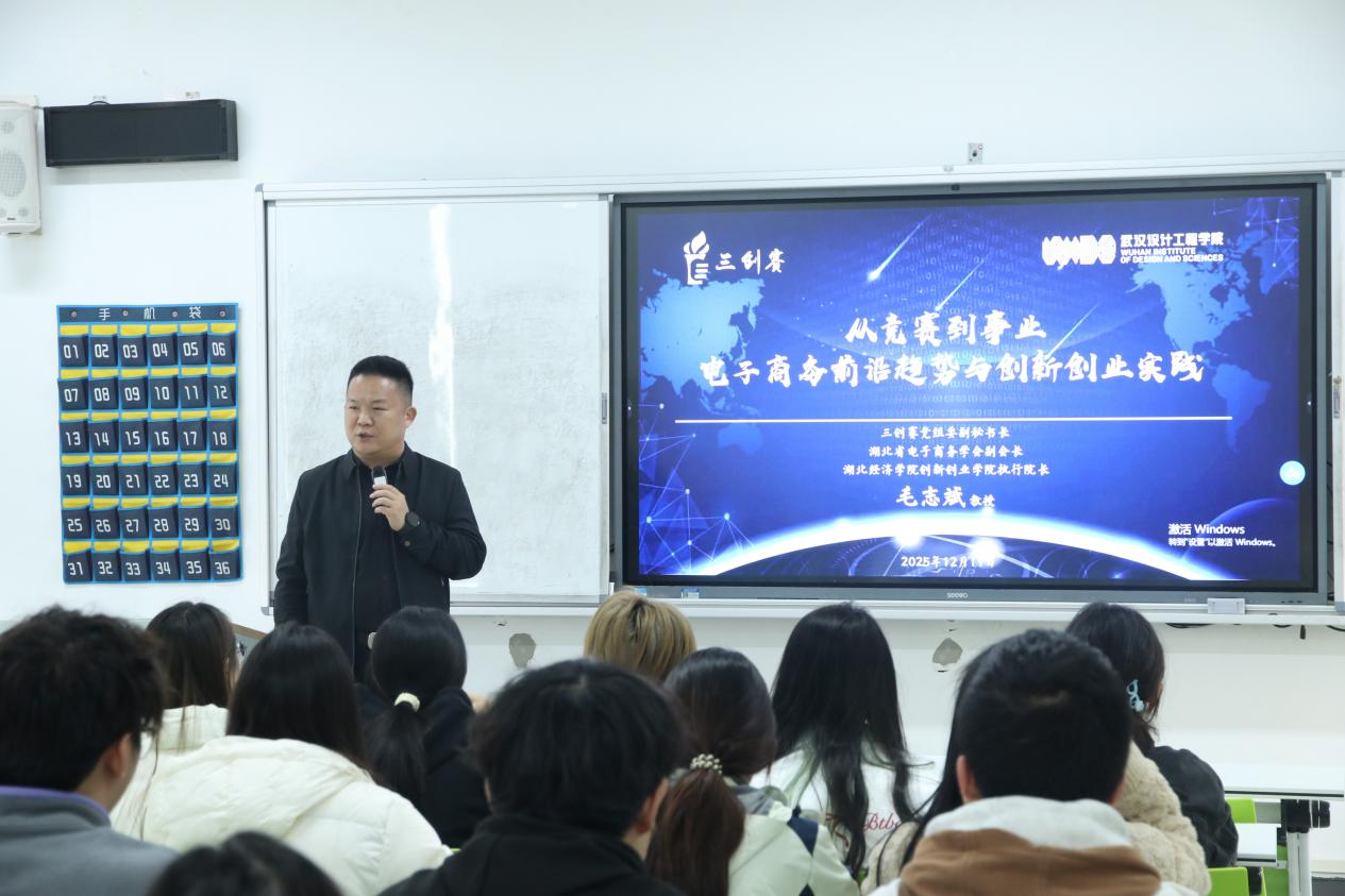 为深化电子商务专业建设,拓展员工行业视野,并紧密连接学科竞赛与职业发展路径,12月11日,公司特邀湖北经济公司教授、创新创业公司执行经理、电子商务国家级一流本科专业建设点负责人毛志斌教授,在T11临湖轩B3029教室,为2024级电子商务专业全体员工带来了一场题为《从竞赛到事业:电子商务前沿趋势与创新创业实践》的精彩讲座。yl23411经理湛柏明、副经理祁峰和经贸与管理系教师代表共同参加了此次讲座。本次讲座是推动公司电子商务专业高质量发展、强化员工实践创新能力培养的重要环节。