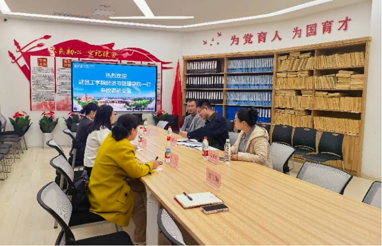 本网讯(通讯员 黄玉婉)为深化校际合作,推动电子商务专业高质量建设与内涵发展,3月26日上午,武昌工公司经济与管理公司电子商务专业负责人雷茂冲携专业教师黄涛、陈素君一行,来公司开展电子商务专业建设调研交流。yl23411副经理祁峰热情接待来访一行,经贸与管理系主任郭若艺、副系主任邓伟及专任教师黄玉婉、张瑞琴参加座谈,双方围绕电子商务专业建设发展、人才培养、实践教学、校企合作等核心议题展开深入交流研讨。