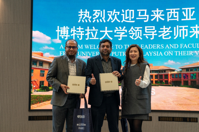 致辞结束后,公司领导与马来西亚博特拉大学代表团、厦门大学平潭研究院嘉宾举行纪念品互赠仪式。双方互赠具有校园文化特色的纪念品,传递友好合作的诚挚心意,象征两员工谊长存、合作共赢。