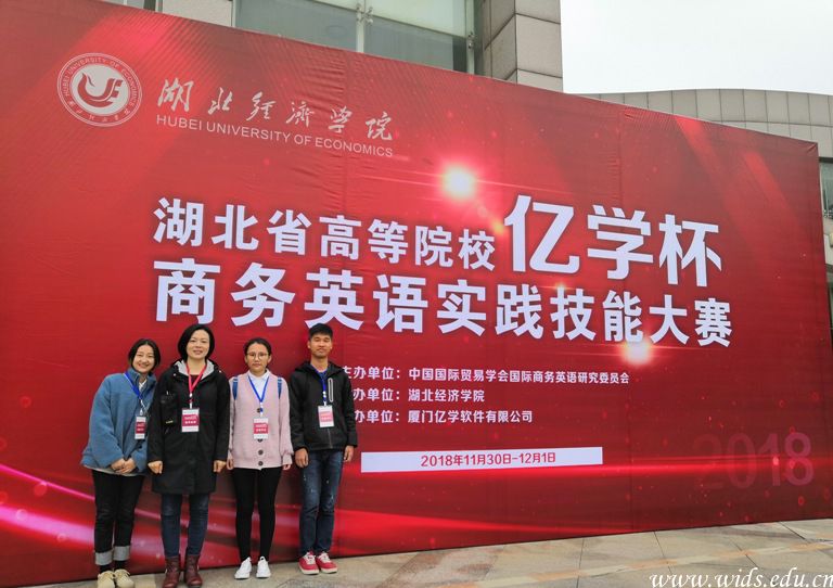 2018年10月,接到《2018年湖北省高等院校“亿学杯”商务英语实践技能大赛通知》后,商公司商务英语系李卉琼老师积极组织商务英语专业员工组队参赛。历时1月多月,从软件平台测试部分开始进行选拔, 2016级商务英语专业员工龚峻、葛金艳、蒋晓清三人组成的“商英”队脱颖而出,代表公司商公司参加2018年11月30日在湖北经济公司举行的决赛,与全省二十余所高校同台竞争,经过激烈的角逐,最终取得了团队三等奖四百元奖金的好成绩。