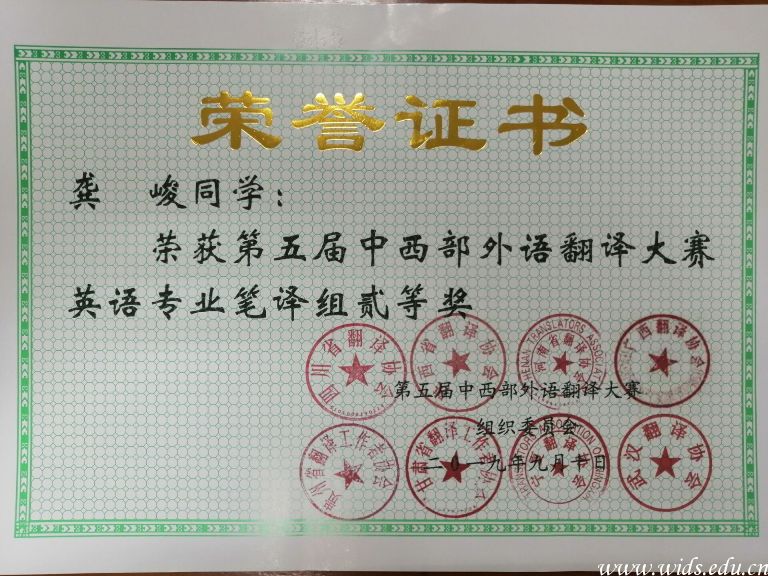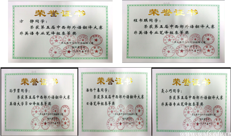本网讯(通讯员 李卉琼)近日,第五届中西部外语翻译大赛成绩揭晓,公司2016-2018级员工在大赛中取得了优异的成绩。其中,公司2016级商务英语专业员工龚峻、程书琪、方静等同学分别获得了二等奖和三等奖若干项。此次员工竞赛取得的优异成绩对公司商务英语和公共英语翻译教学研究的发展起到了建设性的作用。