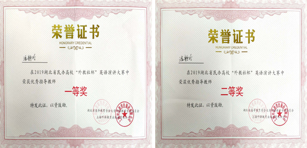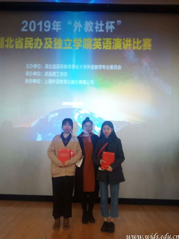 本网讯(通讯员 蔡安琪)近日,由湖北省高等教育学会大学外语教学专业委员会主办的2019年“外教社杯”‘讲好中国故事’英语演讲决赛在武昌理工公司隆重举行。公司2017级商务英语专业员工蔡安琪和 2018级数字媒体技术专业员工王雨彤在指导教师潘静玲的带队下,与来自20多所高校的参赛选手同台竞技,经过激烈的角逐,两位同学最终为公司赢得了荣誉,分别获得英语演讲竞赛专业组一等奖和非专业组二等奖的优异成绩,指导教师潘静玲获得了优秀指导教师一等奖和二等奖的荣誉。