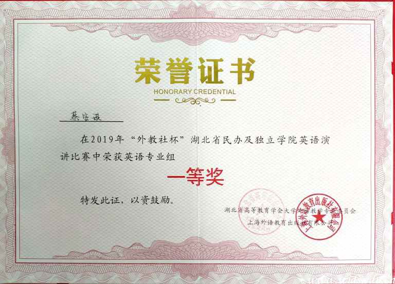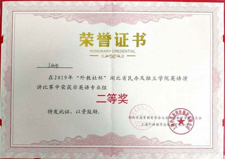 据悉,2019年“外教社杯”湖北省民办高校 “讲好中国故事”英语演讲竞赛按照专业设置,分英语专业组和非英语专业组两个赛区进行。决赛前,公司根据赛事流程,在全校范围内通过选题演讲和即兴演讲的方式择优选拨出蔡安琪和王雨彤两位同学代表公司参加英语专业组和非英语专业的决赛。