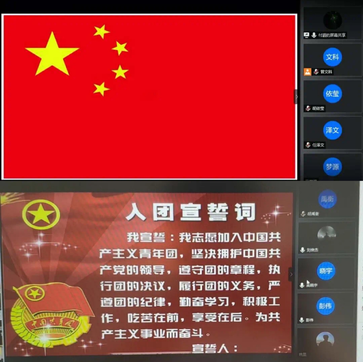 入团仪式中,新团员奏唱国歌、庄严宣誓,立誓要坚守理想信念,积极上进,刻苦学习,以团员的标准严格要求自己,以实际行动践行团组织的章程。