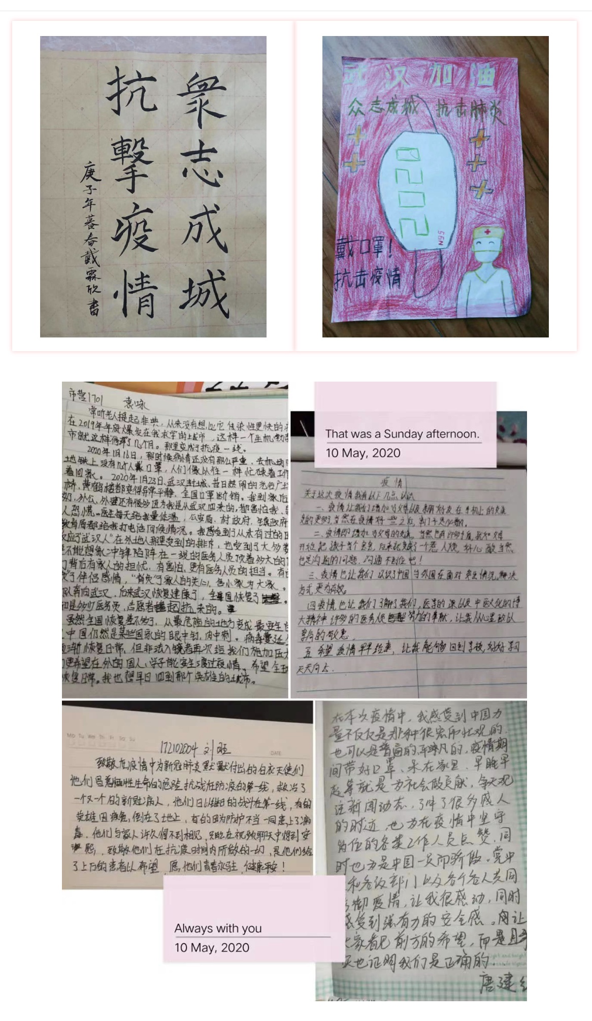 习近平总书记在五四青年节寄语中指出,青春由磨砺而出彩,人生因奋斗而升华。面对突如其来的新冠肺炎疫情,部分团员积极响应校团委“五四精神,传承有我”的号召,通过书法、绘画、征文、小视频等作品抒发自己跟党奋斗,热爱祖国的真挚感情。