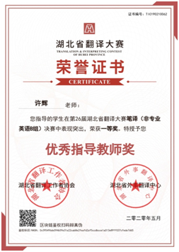 (通讯员 许辉)近日,湖北省第26届外语翻译大赛落下帷幕,播音1601班马梦雅同学在经历初赛、复赛和决赛等环节的激烈角逐后脱颖而出,荣获非英语专业B组笔译一等奖。刘子钰、尧蓉蓉、林梦琦等三位同学分别获得笔译三等奖,叶宇同学获口译三等奖,潘杨千春获日语组笔译三等奖。另外,商公司许辉老师被评为优秀指导教师。