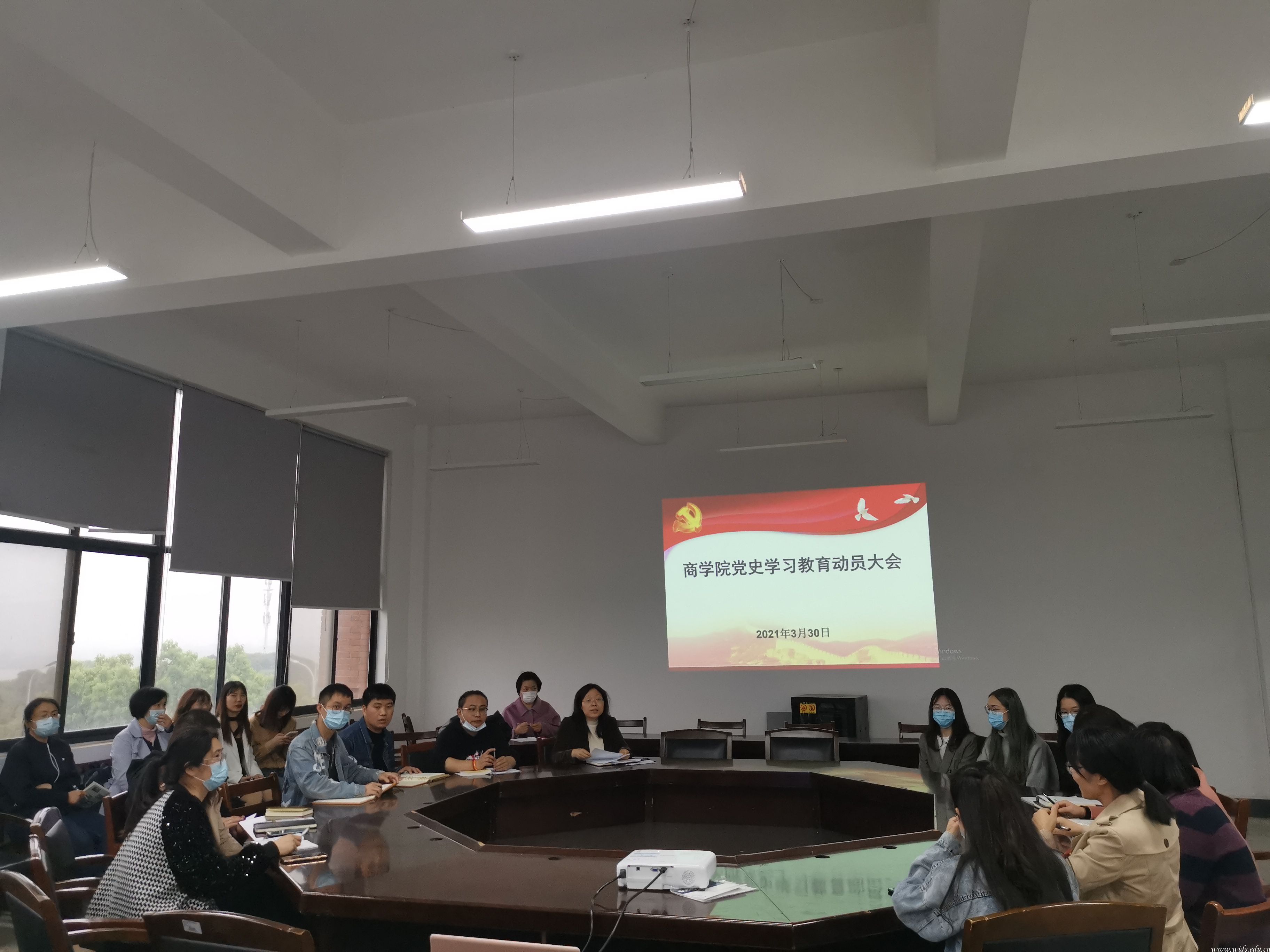 本网讯(通讯员 杜宇)3月30日下午,商公司在临湖轩三楼会议室召开党史学习教育动员大会,部署公司党史学习教育工作。会议由公司党总支副书记胡紫玲主持,全体教职工党员和员工党员代表参会。