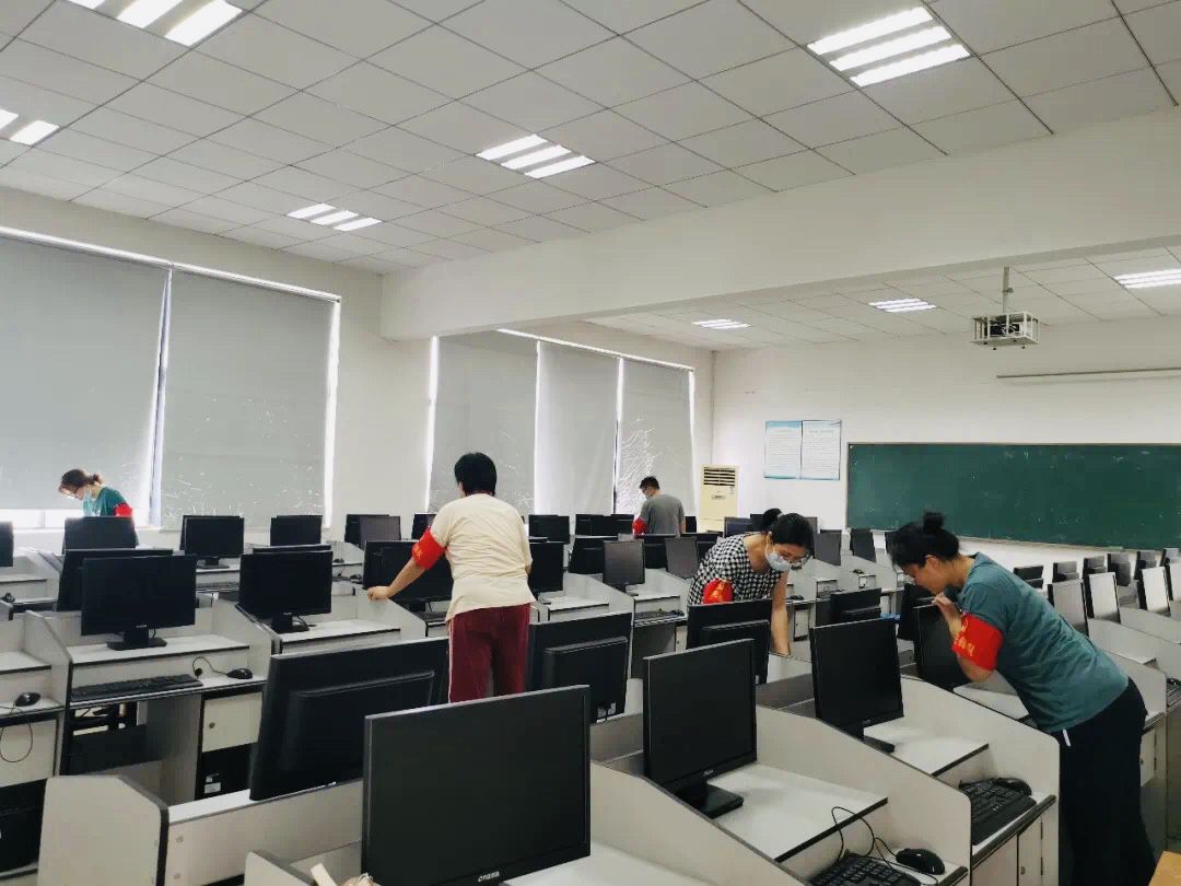 活动现场,党员同志们热情高涨,兵分两路,拿起工具,团结协作,对图书馆六楼所有语音室、临湖轩四至五楼的专业实验(训)室的环境卫生进行了全面的清扫,不留任何一个卫生死角。卫生清理结束后,党员同志们还对每间教室摆放不整齐的桌椅板凳进行了规整,仔细检查了每把凳子,并将已破损的凳子清点出教室。经过大家的努力,教室环境卫生得到明显改善,整体面貌焕然一新。