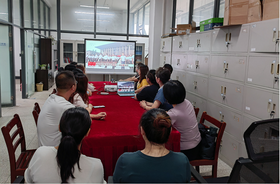 商公司党总支书记胡紫玲、副经理张亮、各系室负责人和部分党员教师代表到场观看,并在会后积极交流学习。会上胡紫玲书记指出,在党的百年华诞之际,公司昨晚隆重举行了庆祝中国共产党成立100周年教职工合唱比赛暨“两优一先”表彰大会,向公司受表彰的部门和优秀个人表示热烈祝贺。她强调,党员教师要深刻铭记党的光辉历史,始终牢记“为党育人,为国育才”的教育理念,传承红色基因,赓续红色血脉,做到学史明理、学史增信、学史崇德、学史力行;依托公司办学优势,强化高校社会服务职能,为湖北省全方位振兴贡献力量。