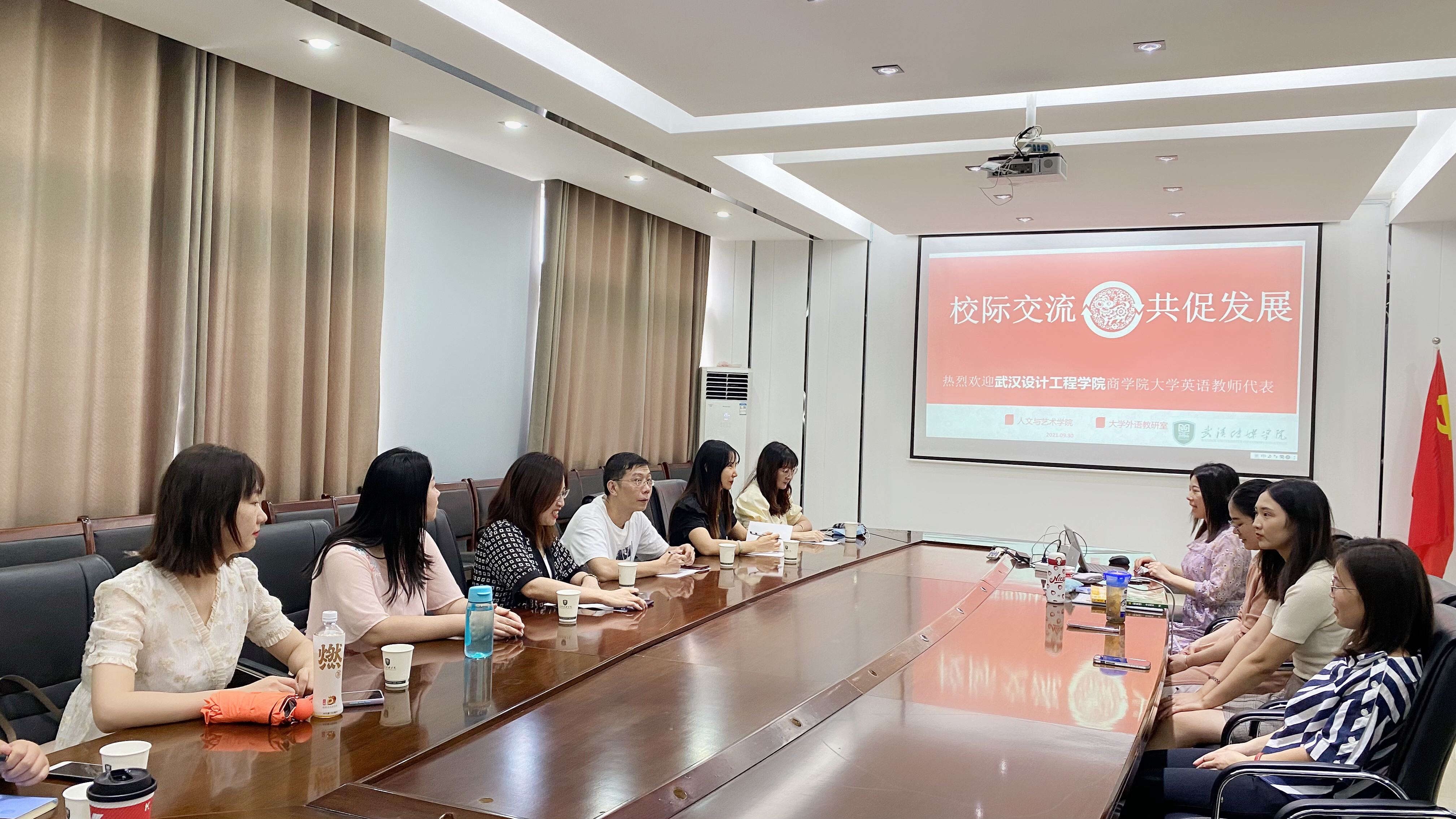 本网讯(通讯员 明净)为促进教育经验资源共享,深化课程改革,全面提升公司大学英语教育教研的水平,打造高效课堂,公司商公司公共英语教研室一直坚持“走出去、请进来、互相学习、促进发展”的原则,积极开展校际教学研讨交流活动,力求博采众长。在高等教育出版社湖北省教学服务中心肖丽华和肖丹老师的支持协助下,2021年9月30日上午,公司商公司公共英语教研室一行5名骨干英语教师在系主任赵丹老师的带领下来到武汉传媒公司人文艺术公司大学外语系开展教研交流活动,双方围绕大学英语课程设置、课程改革建设、办学经验和特色、课题教研、学科竞赛等方面进行了深入交流。