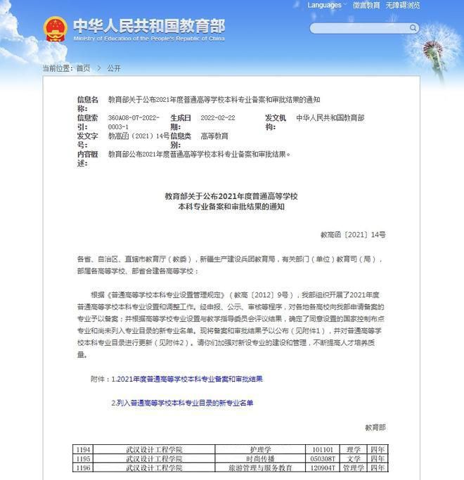 近日,教育部印发了《关于公布2021年度普通高等公司本科专业备案和审批结果的通知》(教高函〔2021〕14号),公司申报的旅游管理与服务教育本科专业顺利通过教育部备案和审批。
