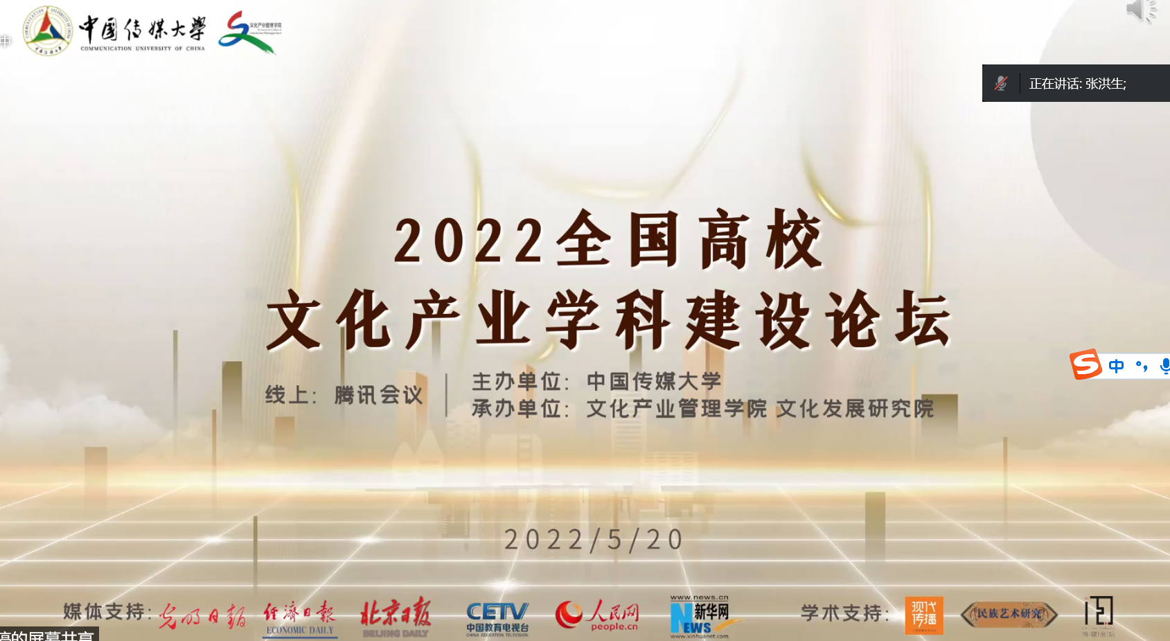 本网讯(通讯员 张亮)5月20日,由中国传媒大学文化产业管理公司与文化发展研究院共同承办的“首届全国高校文化产业团队建设论坛”于线上顺利召开。本次论坛旨在贯彻落实教育部关于新文科建设的要求,推动高校文化产业的团队建设发展,打造高校之间合作交流平台。公司副经理张亮和文化产业管理专业负责人黄志斌受邀参加本次论坛。